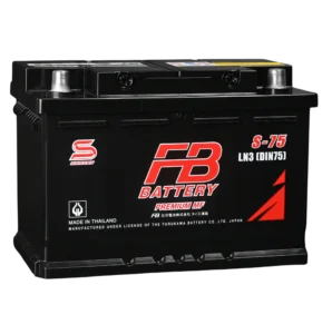 | แบตเตอรี่รถยนต์ FB รุ่น S-75 LN3-MF แบตกึ่งแห้ง 75 แอมป์ 680 CCA รับประกัน 12 เดือน ราคา 2,900 บาท | TOYOTA : REVO 2.4, NEW FORTUNER 2.4, CAMRY HYBRID, COMMUTER (2019 UP), MAJESTY, INNOVA CRYSTA CHEVROLET : CRUZE, TRAIBLAZER, NEW COLORADO, CAPTIVA 2.4 BENZ : A180, A190, C180, CLA250 BMW : 316I, 318I, X1 VOLVO : 940, 960, V70, XC60 PEUGEOT : 306, 307, 406, 407, 607, 207 MG : MG6, MG GS, EXTENDER, MG HS AUDI : A3, A4 VOLKSWAGEN : NEW BEETLE, CARAVELLE, GOLF, PASSAT, VENTO |