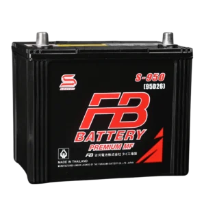 | แบตเตอรี่รถยนต์ FB รุ่น S-950 L/R แบตกึ่งแห้ง 80 แอมป์ 670 CCA รับประกัน 12 เดือน ราคา 2,250 บาท | HONDA : ACCORD TOYOTA : CAMRY, FORTUNER 2.7, ALPHARD, INNOVA, VENTURY, HARRIER NISSAN : MARCH, ALMERA, JUKE, TEANA, X-TRAIL, CEFIRO, NOTE MITSUBISHI : LANCER, SPACE WAGON, PAJERO MAZDA : MAZDA 3 SKYACTIV, CX-3, CX-5 2.0 (เบนซิล) SUBARU : XV, IMPREZA, FORESTER, OUTBACK LEXUS : ES 300, ES 400, GS 300, IS 200, IS 250, RX 300 ฯลฯ |