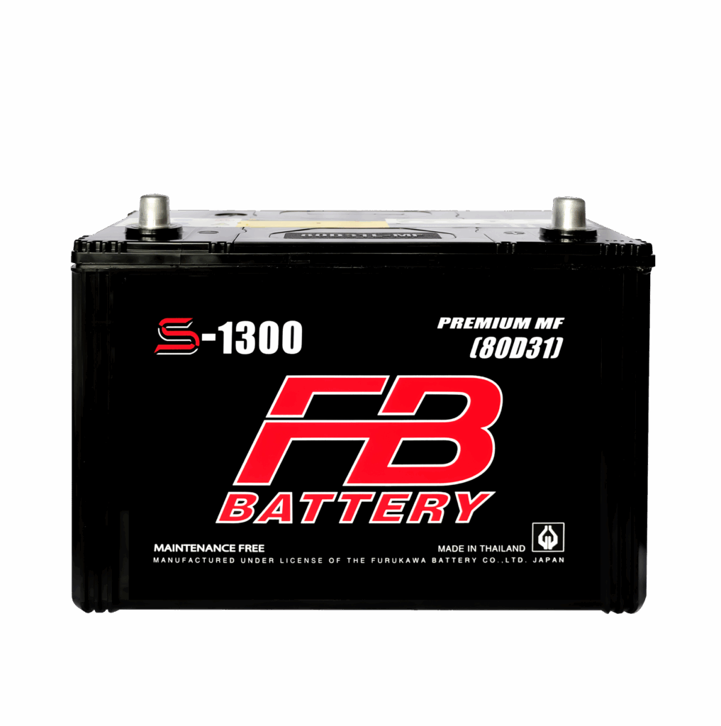 แบตเตอรี่รถยนต์ FB S-1300R 80 แอมป์ นั้นเป็นแบตเตอรี่ชนิดกึ่งแห้ง MF (Maintenance Free) ในโครงสร้างของตัวแบตเตอรี่มีส่วนผสมระหว่างตะกั่วกับแคลเซี่ยมเทคโนโลยีใหม่จากประเทศญี่ปุ่นคุณสมบัติในตัวแบตเตอรี่นั้นมีความต้านทานไฟฟ้าต่ำโดยหลักการทางไฟฟ้าอุปกรณ์ที่มีค่าความต้านทานต่ำ จะทำให้จ่ายกระแสไฟฟ้าได้ดีและเกิดความร้อนได้ยากค่อนข้างสูญเสียน้ำน้อยจึงทำให้แบตเตอรี่ FB S-1300R 80 แอมป์ แทบไม่ต้องเติมน้ำกลั่นตลอดอายุการใช้งาน และมีขนาดความจุที่ไฟมากขึ้น ในไซด์ที่เท่าเดิมมีค่า CCA สูงกว่าแบตเตอรี่ชนิดน้ำ และไฮบริค ซึ่งเหมาะสมกับผู้ที่ใช้รถยนต์ที่ไม่มีเวลาดูแลแบตเตอรี่พร้อมตอบโจทย์รถกระบะญี่ปุ่น / SUV ขนาด 2.5 – 3.0 CC. ทุกประเภทที่เสริมอุปกรณ์ไฟฟ้าภายในรถยนต์ที่หลากหลายแบบต้องการกำลังไฟมากขึ้น แบตเตอรี่ FB S-1300R 80 แอมป์ ถูกผลิตขึ้นในประเทศไทย มาตราฐานประเทศญี่ปุ่นครับ