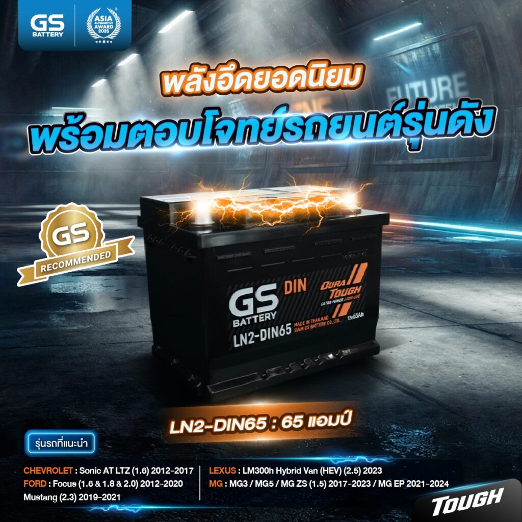 แบตเตอรี่รถยนต์ GS LN2-DIN65 65 แอมป์ นั้นเป็นแบตเตอรี่ชนิดกึ่งแห้ง MF (Maintenance Free) ในโครงสร้างของตัวแบตเตอรี่มีส่วนผสมระหว่างตะกั่วกับแคลเซี่ยมเทคโนโลยีใหม่จากประเทศญี่ปุ่นคุณสมบัติในตัวแบตเตอรี่นั้นมีความต้านทานไฟฟ้าต่ำโดยหลักการทางไฟฟ้าอุปกรณ์ที่มีค่าความต้านทานต่ำ จะทำให้จ่ายกระแสไฟฟ้าได้ดีและเกิดความร้อนได้ยากค่อนข้างสูญเสียน้ำน้อยจึงทำให้แบตเตอรี่ GS LN2-DIN65 65 แอมป์ แทบไม่ต้องเติมน้ำกลั่นตลอดอายุการใช้งาน และมีขนาดความจุที่ไฟมากขึ้น ในไซด์ที่เท่าเดิมมีค่า CCA สูงกว่าแบตเตอรี่ชนิดน้ำ และไฮบริค ซึ่งเหมาะสมกับผู้ที่ใช้รถยนต์ที่ไม่มีเวลาดูแลแบตเตอรี่พร้อมตอบโจทย์รถยุโรป ทุกประเภทที่เสริมอุปกรณ์ไฟฟ้าภายในรถยนต์ที่หลากหลายแบบต้องการกำลังไฟมากขึ้น แบตเตอรี่ GS LN2-DIN65 65 แอมป์ ถูกผลิตขึ้นในประเทศไทย มาตราฐานประเทศญี่ปุ่นครับ
